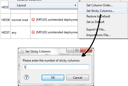 It is now possible to fix an arbitrary number of leading columns in tables. These fixed (or "sticky") columns are always kept in place and not considered during horizontal scrolling. This is a normal table layout setting and persisted accordingly.