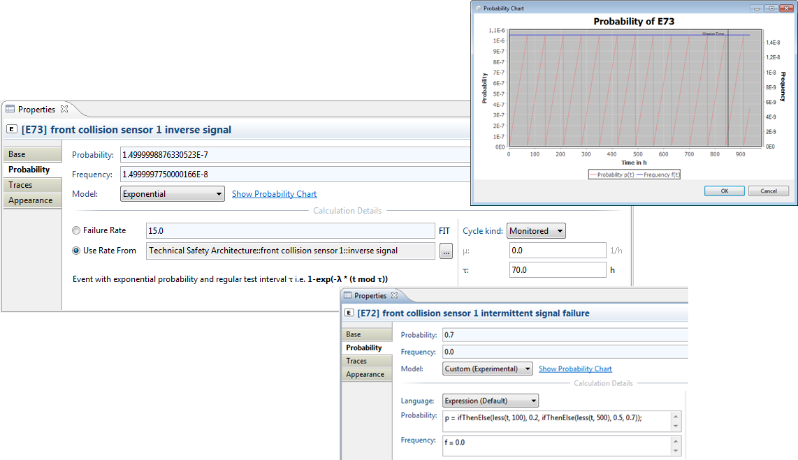 With the new event probability models a time dependent evaluation of unreliability and unavailability is supported. The (un-)availability at a given point in time, the (un-)reliability for the mission time as well as their averages can be calculated e.g. for the IEC61508 Probability of Failure per Demand (PFD) and Probability of Failure per Hour (PFH) and related evaluations. See the help section for more details on the new capabilities.