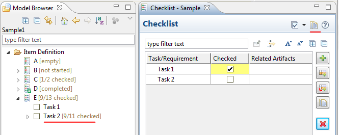 The duplication of a complete checklist is now just one click away: there is an appropriate "Duplicate" action in the checklist editor. Furthermore, tasks that have children are now decorated similar to the checklist.