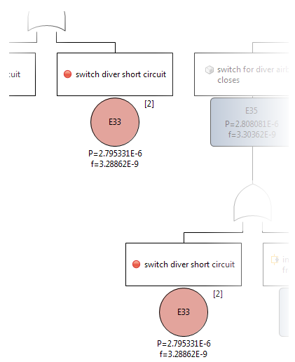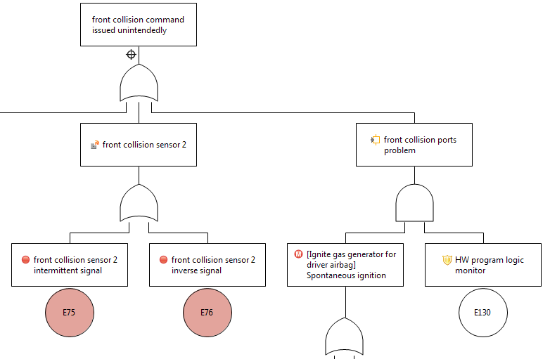 If events are derived from system elements or safety mechanisms, the element icon can now be shown to easily identify what the event is referencing, e.g. a malfunction, a failure mode, a safety mechanism, a component, etc. This eases the visual recognition and structuring of the fault tree. Moreover, intermediate event ID labels can be hidden in order to save diagram space, e.g. in case a qualitative fault tree is developed or if gate labels are used instead of intermediate event IDs.