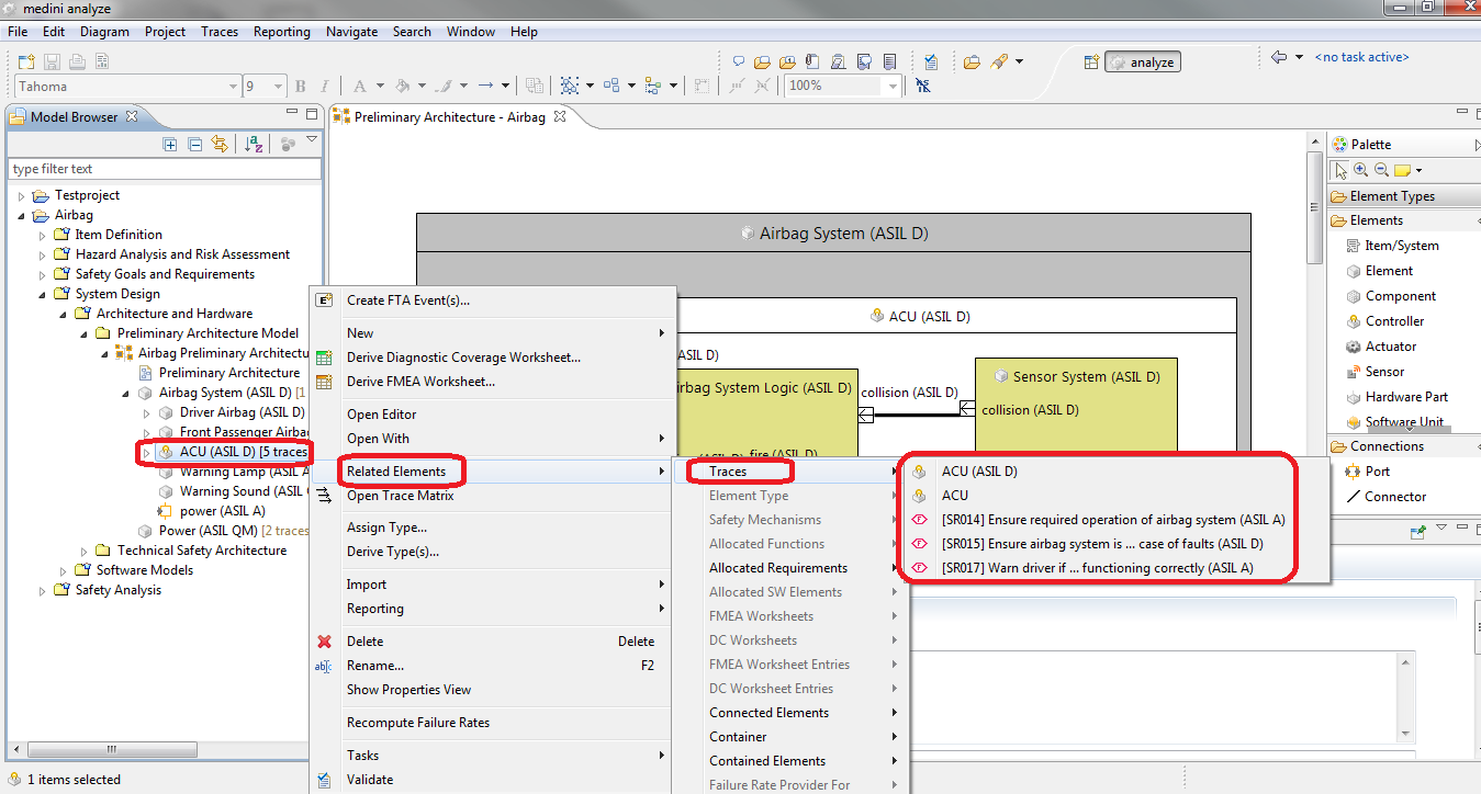 Traceability is a key feature of medini analyze. It is used to e.g.: