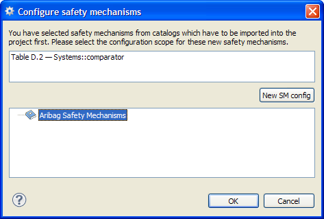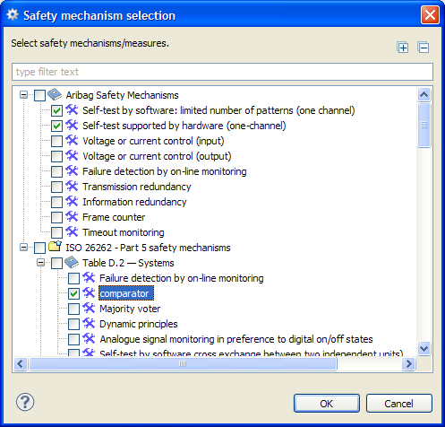 The safety mechanisms allowing to prevent the failure modes from being latent can be selected including its DC. Again, this link will be created at the failure mode in the analyzed model. The mechanisms can be selected from catalogs as described below.