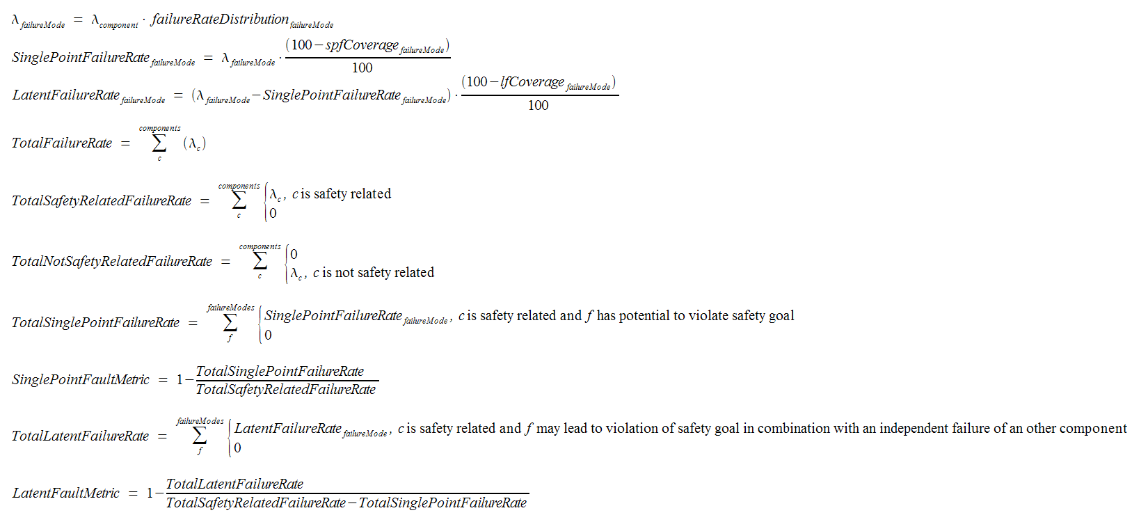 If the option "Enable transient metrics" is on, these values will be shown for permanent and transient failure rates separated and in combination. The formulas applied for the computation are defined by ISO 26262, part 5:
