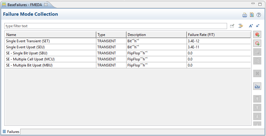 The transient failure modes can be computed based on a "transient base failure rate". That means a project can maintain a set of transient base failure modes such as Single-Event Transient (SET) or Single Bit Upset (SBU) per bit of flip-flop (FF) and medini computes the resulting FIT for a instance based on the number of bits/FF/sequential elements count.