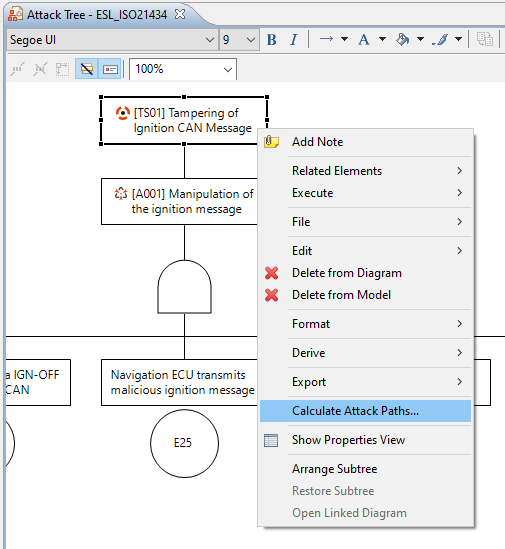 You can also call Calculate Attack Paths... from any intermediate event node in the attack tree. In this case, however, the calculation is done only for the subtree starting at that selected event.