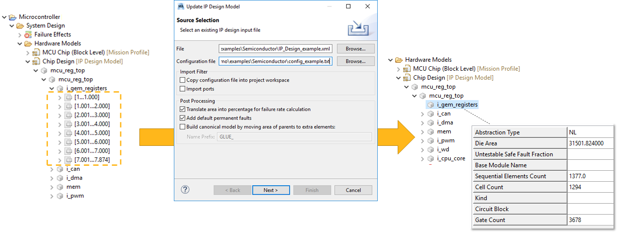 | Streamlined IP Design import | Release 2021 R1 comes with an extended IP Design importer that streamlines huge chip design data while maintaining accuracy. The IPD-XML import wizard can now be provided with a config file where you can specify which of the instance paths shall be pruned. The pruning will drop all sub hierarchies while aggregating the die area, element/gate/cell counts at the specified instance, so you won't loose any information for your analysis.