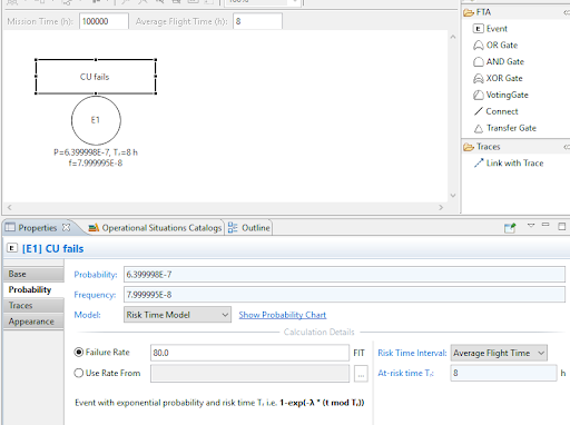 | Time at Risk Model | For ARP4761A based projects, the probability calculation mode "time at risk" has been added to basic events, along with the possibility to specify the average flight time in addition to the mission time.