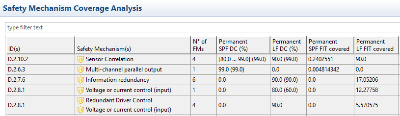 | SM Coverage Analysis | The FMEDA/SPF and LF metrics analysis provides a quantitative assessment on the