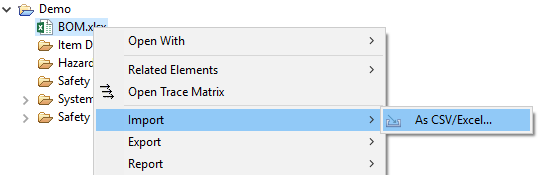 by using the context menu on the document, by choosing a document in the CSV/Excel