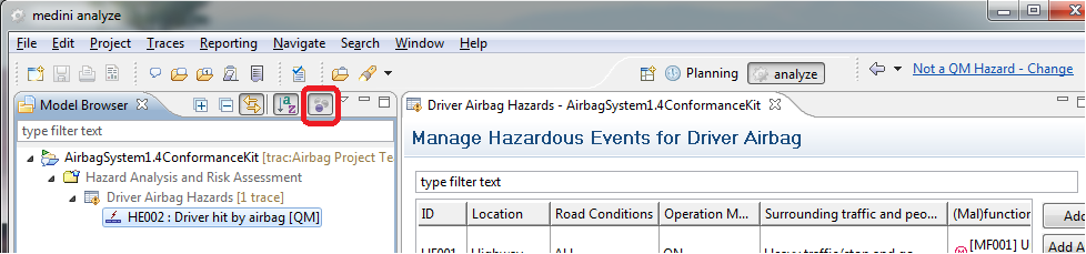 Tasks can be activated or deactivated. When there is an active task medini analyze focuses the model browser to the elements which are in the context of the active task. The focus is visualized by graying out those elements which are not in the context.