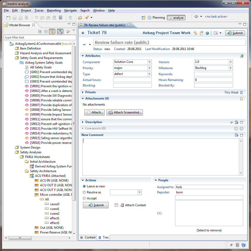 Description field - the field per default contains the link to the model element in medini analyze for which the task was created (if it is created using the procedure explained in Task Creation).