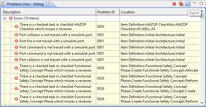 検証マーカーのエクスポート | 妥当性確認の結果等に作成されるマーカーを、Excelまたは他の文書形式でエクスポートできるようになりました。 ![]() |